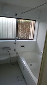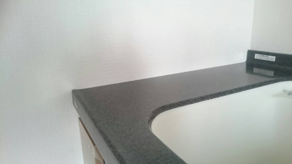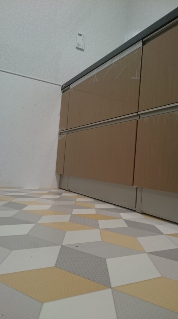 床は水が跳ねることを考えてクッションフロアに。こちらもすてきなものを選ばれました。